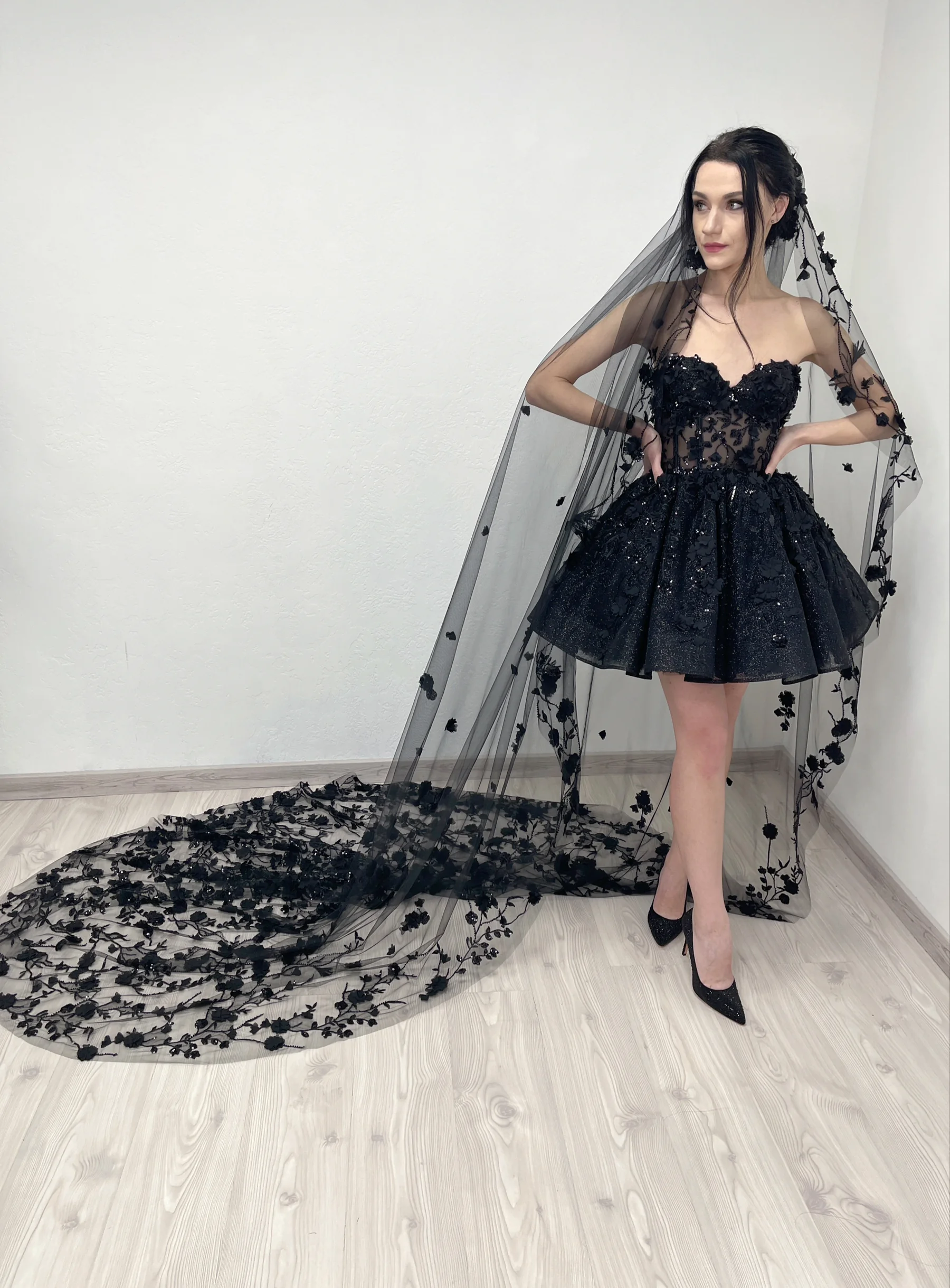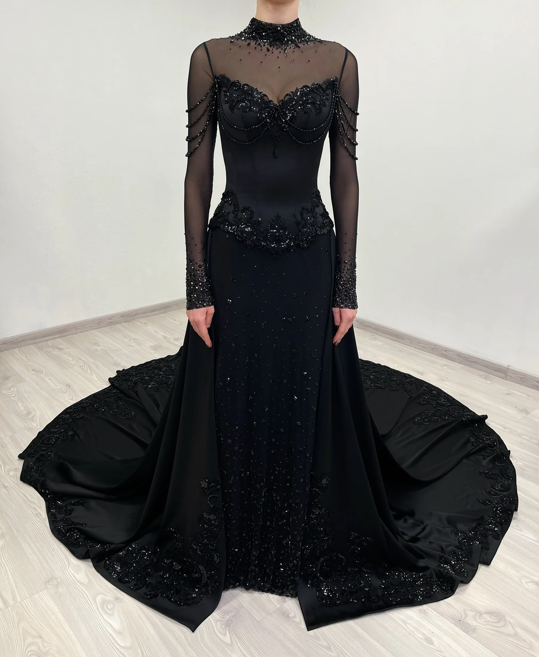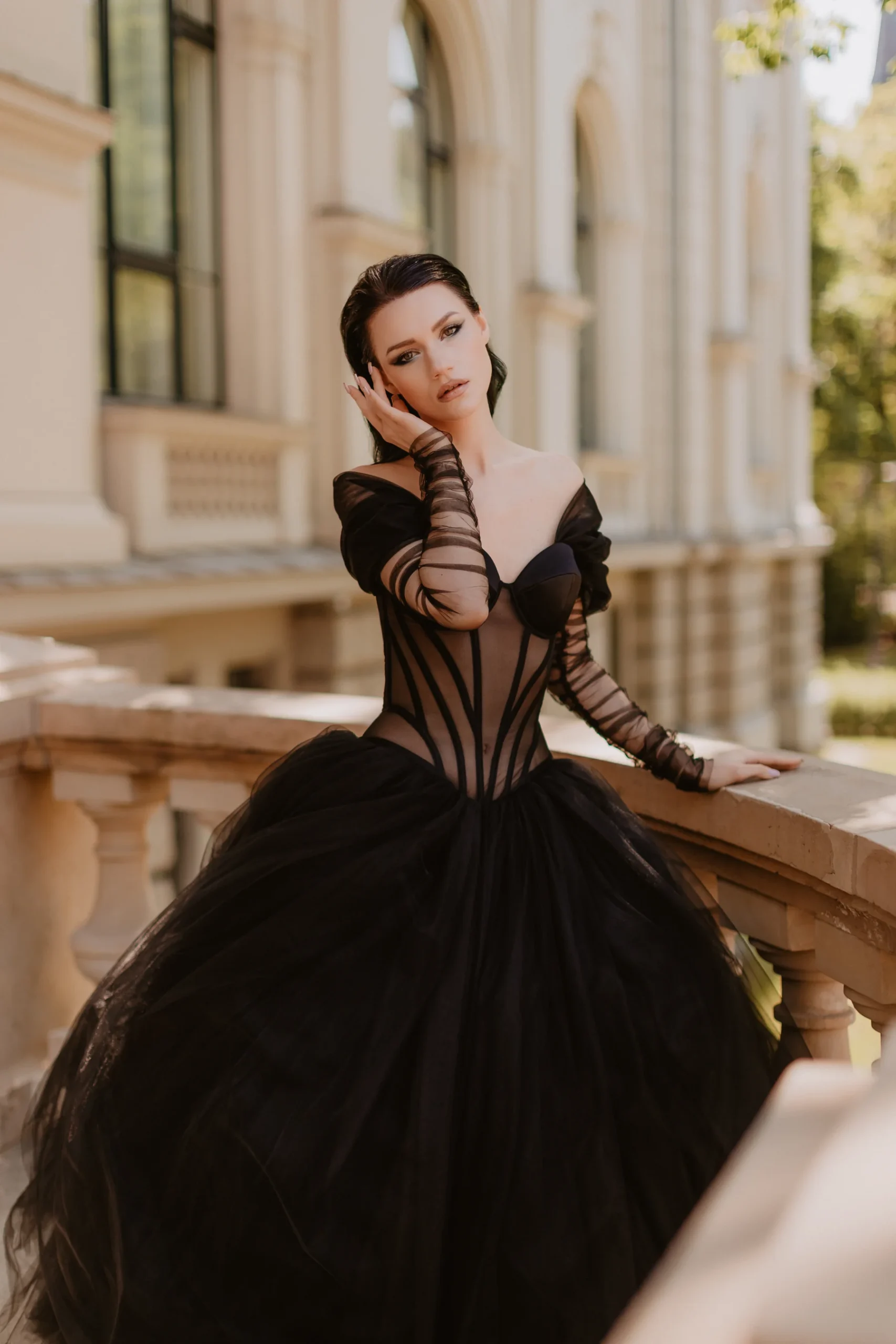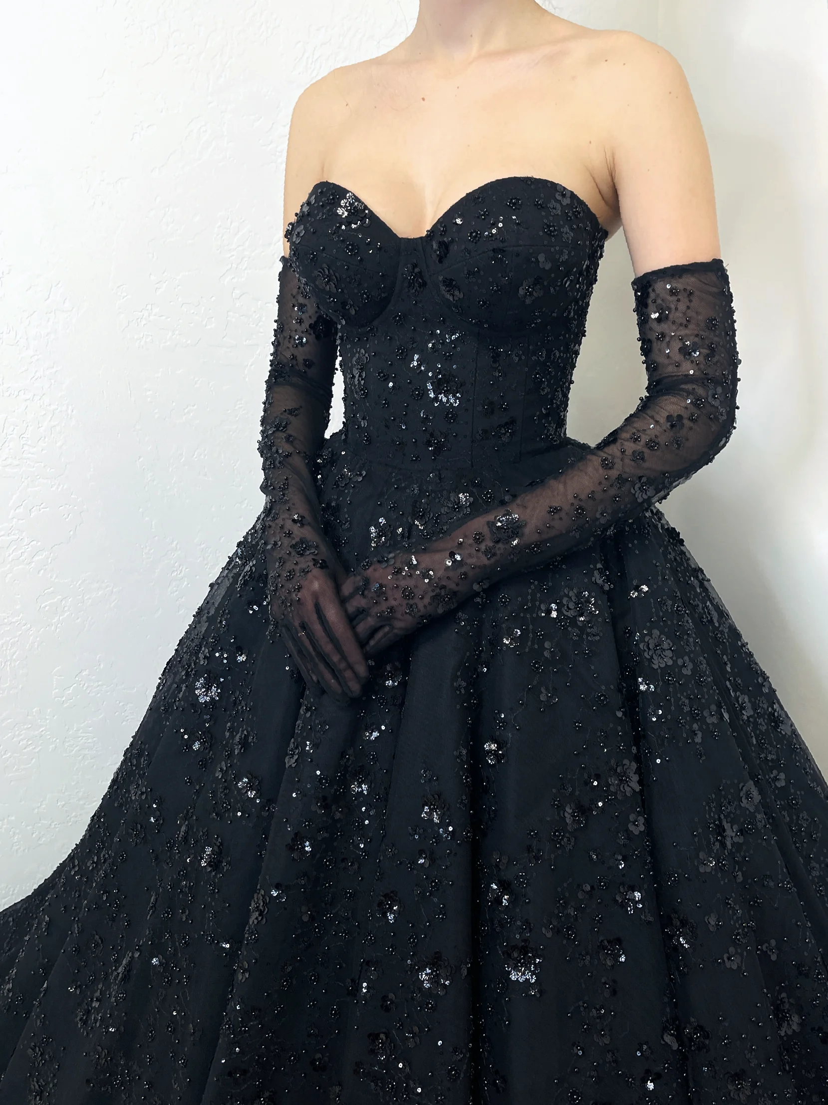 These dresses are crafted over 1 to 12 months in our atelier. Expect structured corsets, delicate lace, detachable trains, and hand-placed sparkle—all in deep, rich black that creates striking contrast and timeless elegance. SHERBON creates gowns for brides who value craftsmanship and individuality over mass production.