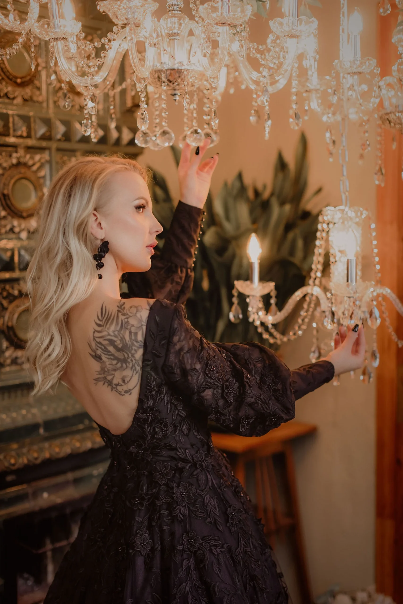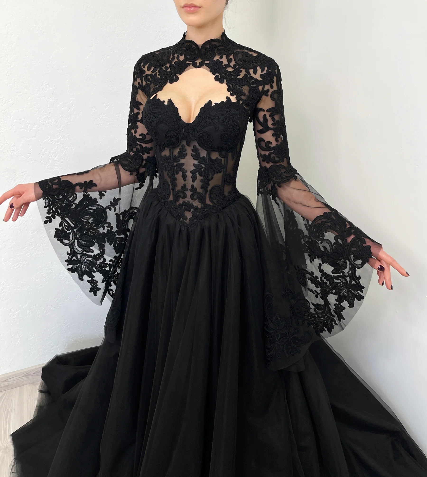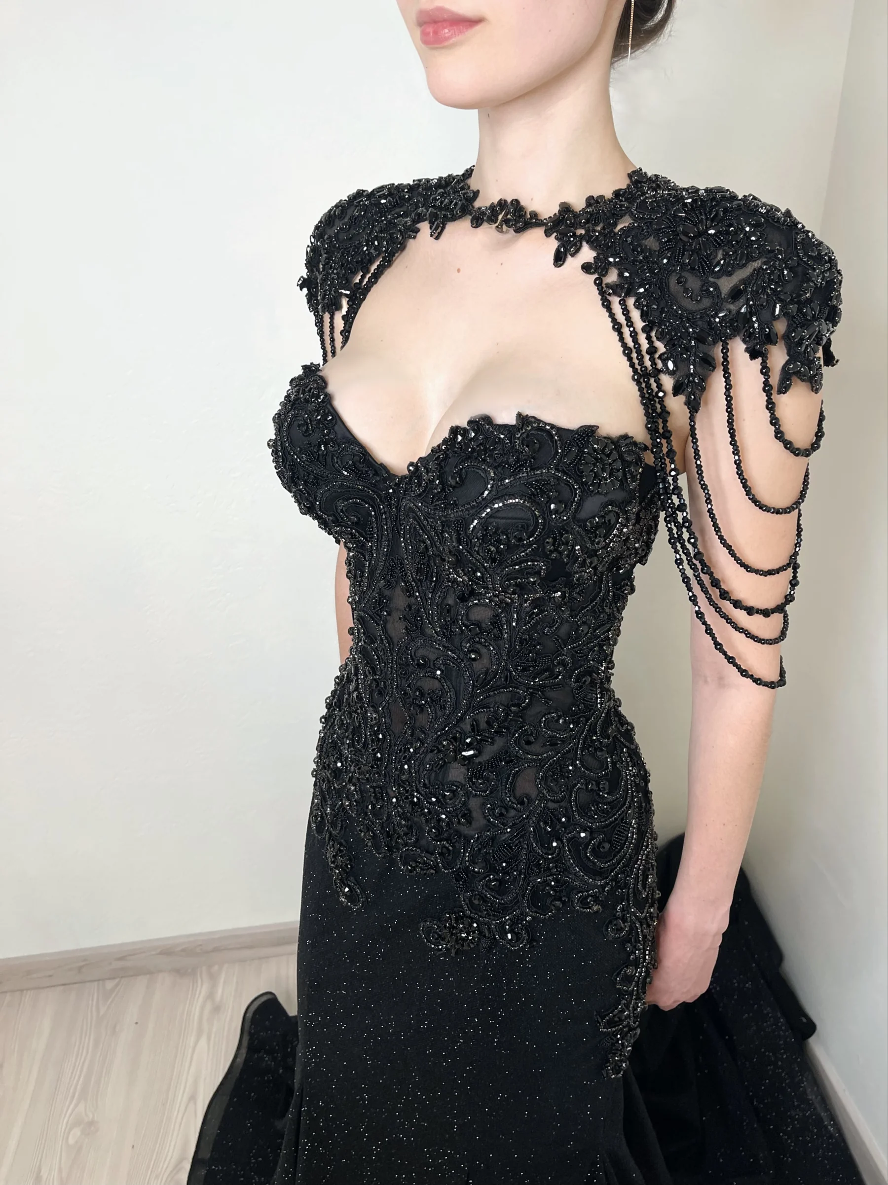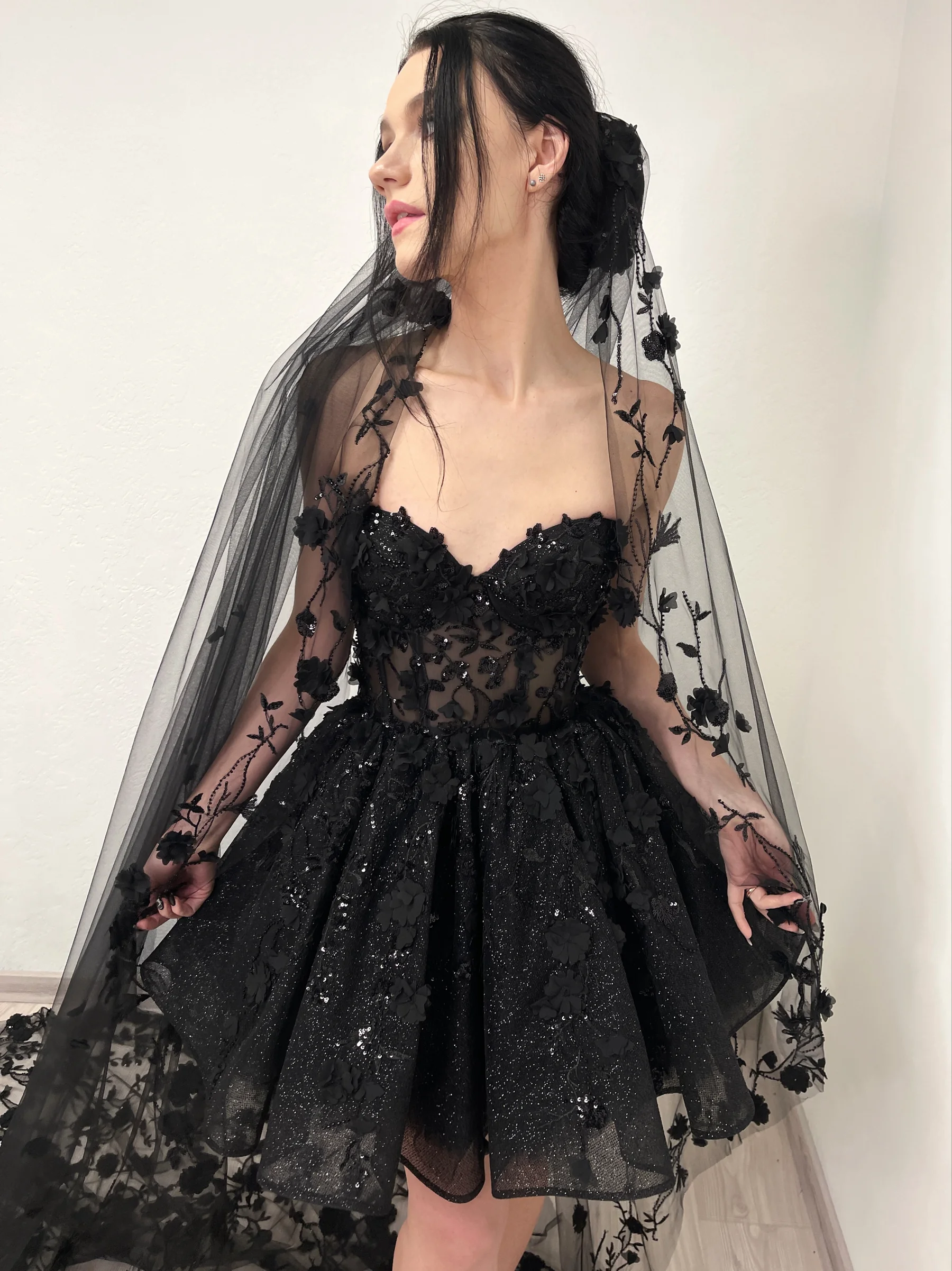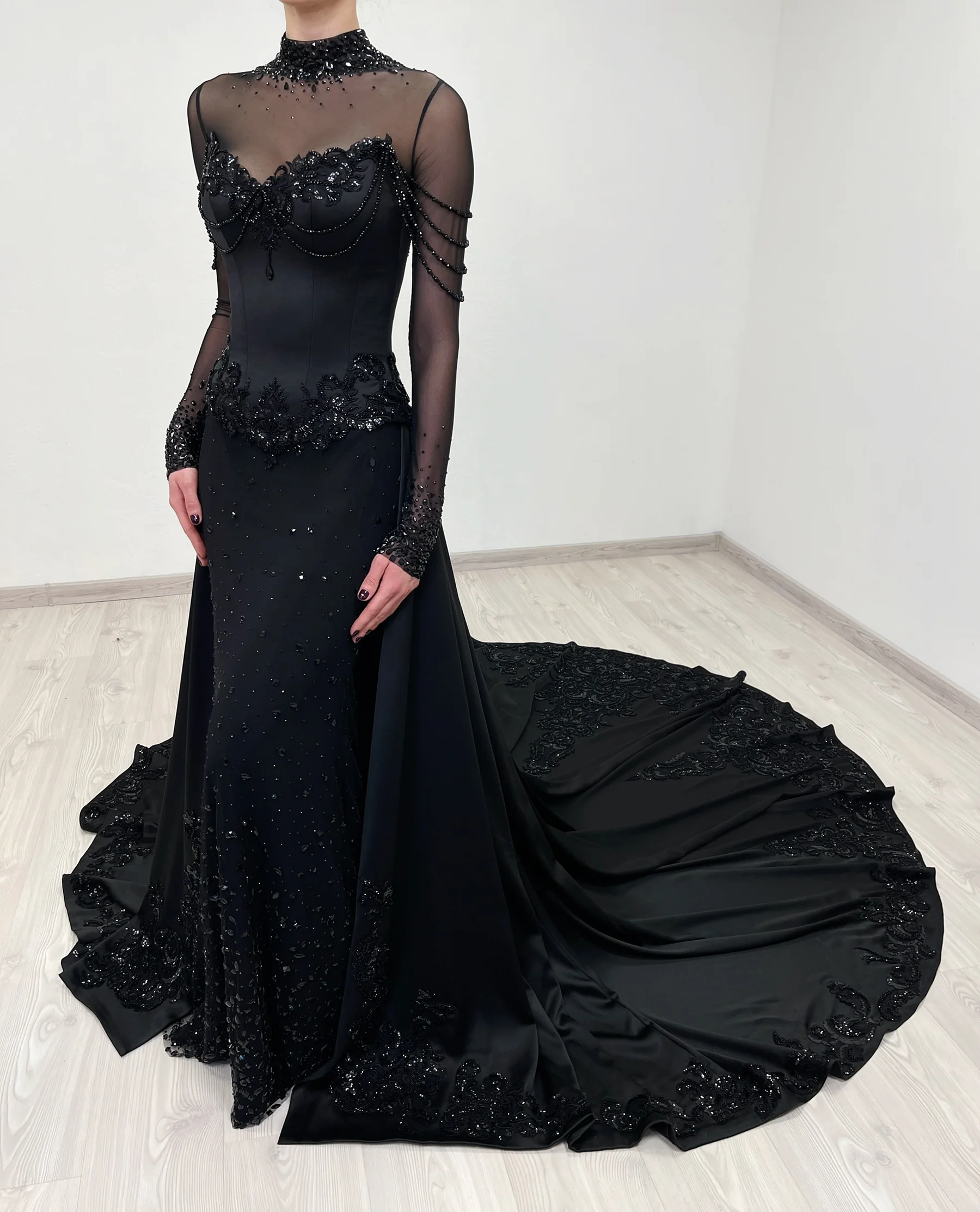 These dresses are crafted over 1 to 12 months in our atelier. Expect structured corsets, delicate lace, detachable trains, and hand-placed sparkle—all in deep, rich black that creates striking contrast and timeless elegance. SHERBON creates gowns for brides who value craftsmanship and individuality over mass production.