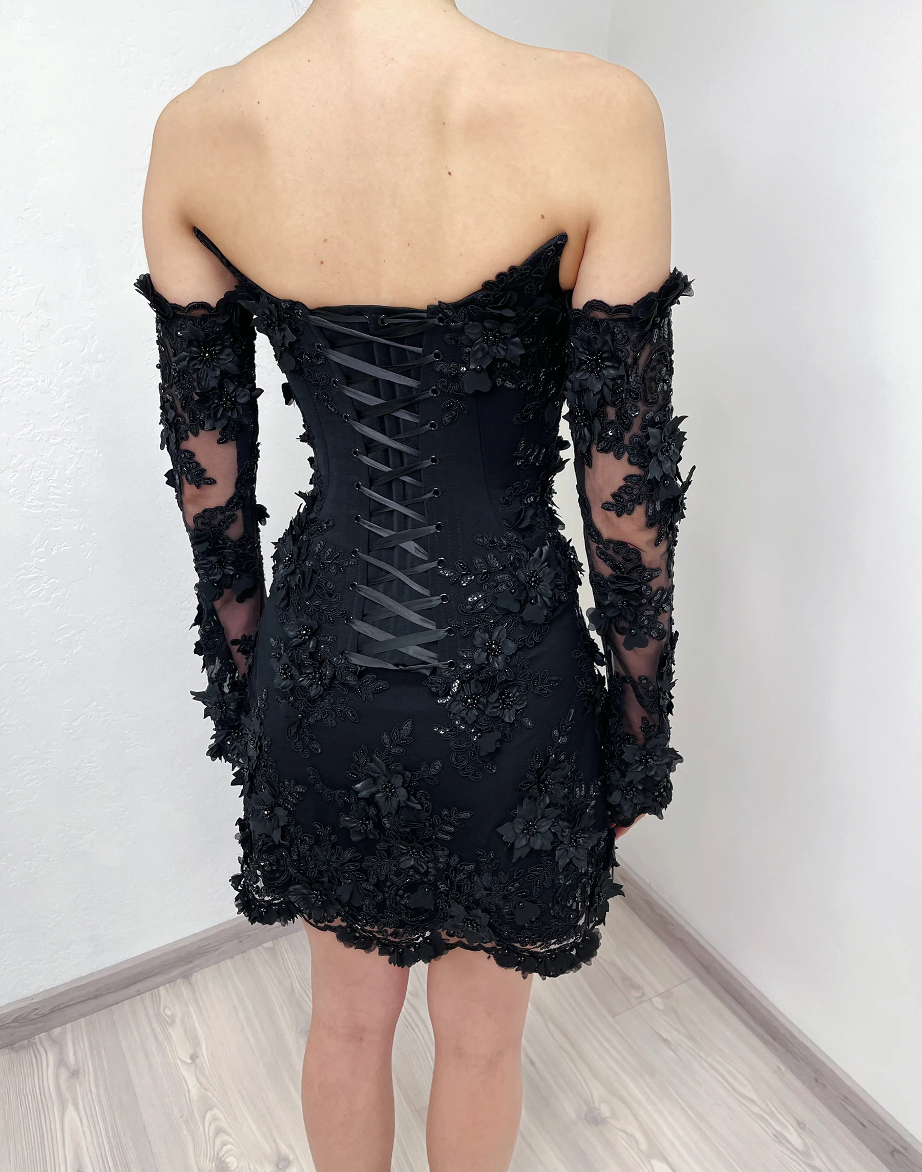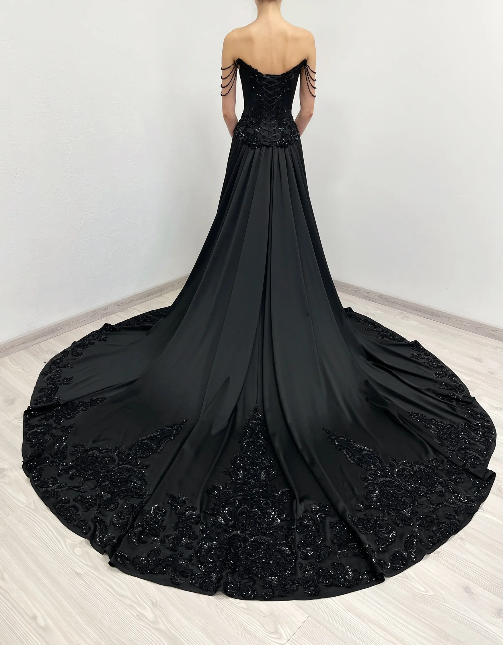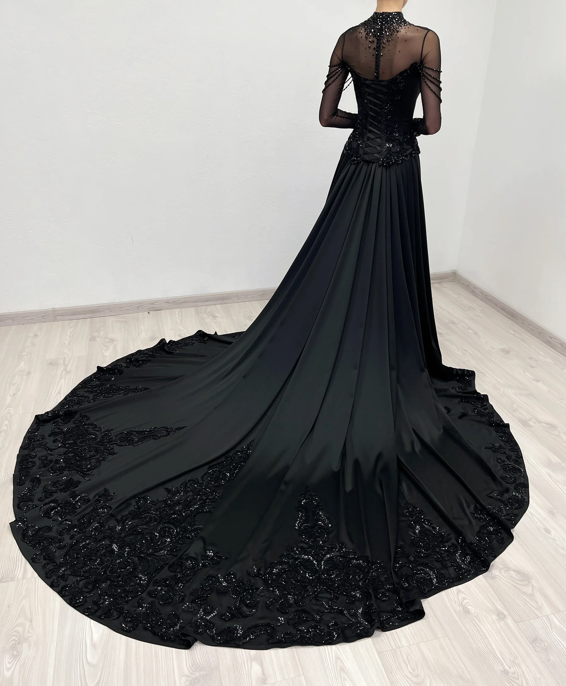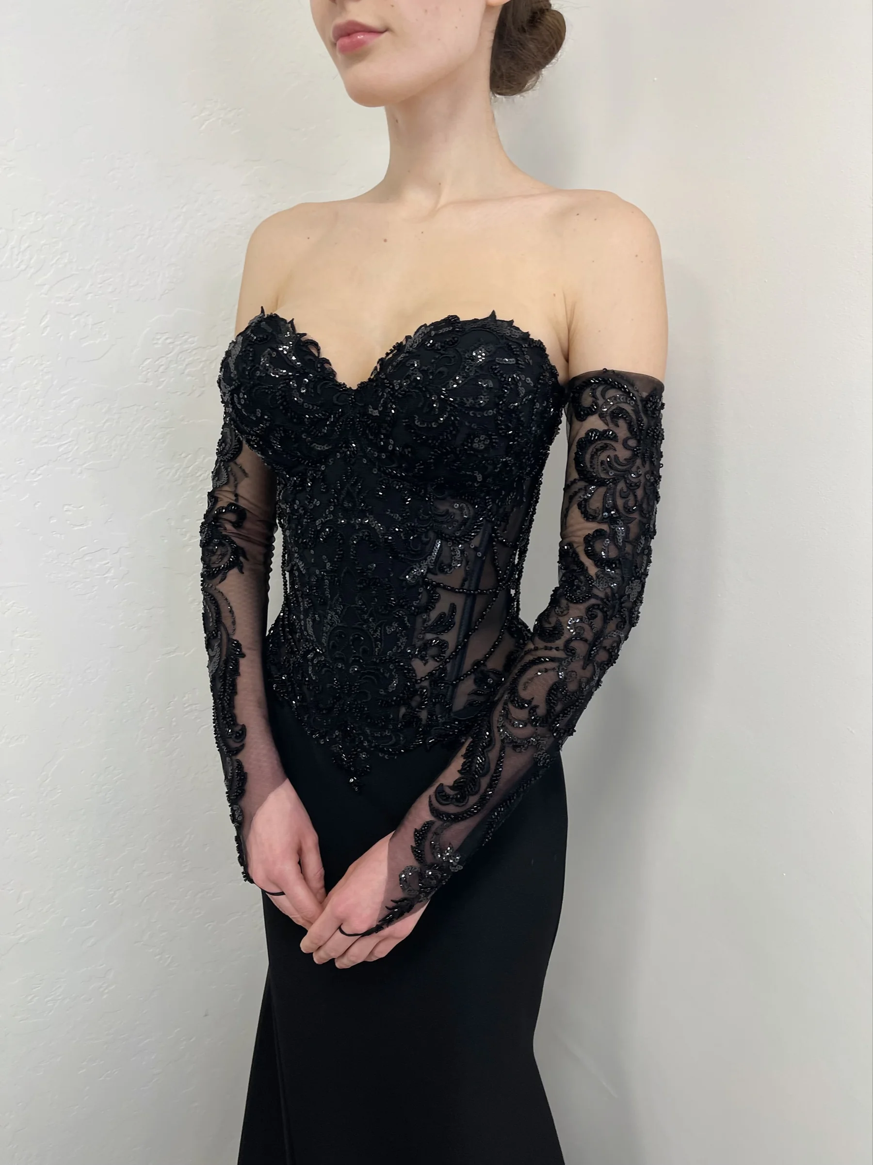 These dresses are crafted over 1 to 12 months in our atelier. Expect structured corsets, delicate lace, detachable trains, and hand-placed sparkle—all in deep, rich black that creates striking contrast and timeless elegance. SHERBON creates gowns for brides who value craftsmanship and individuality over mass production.