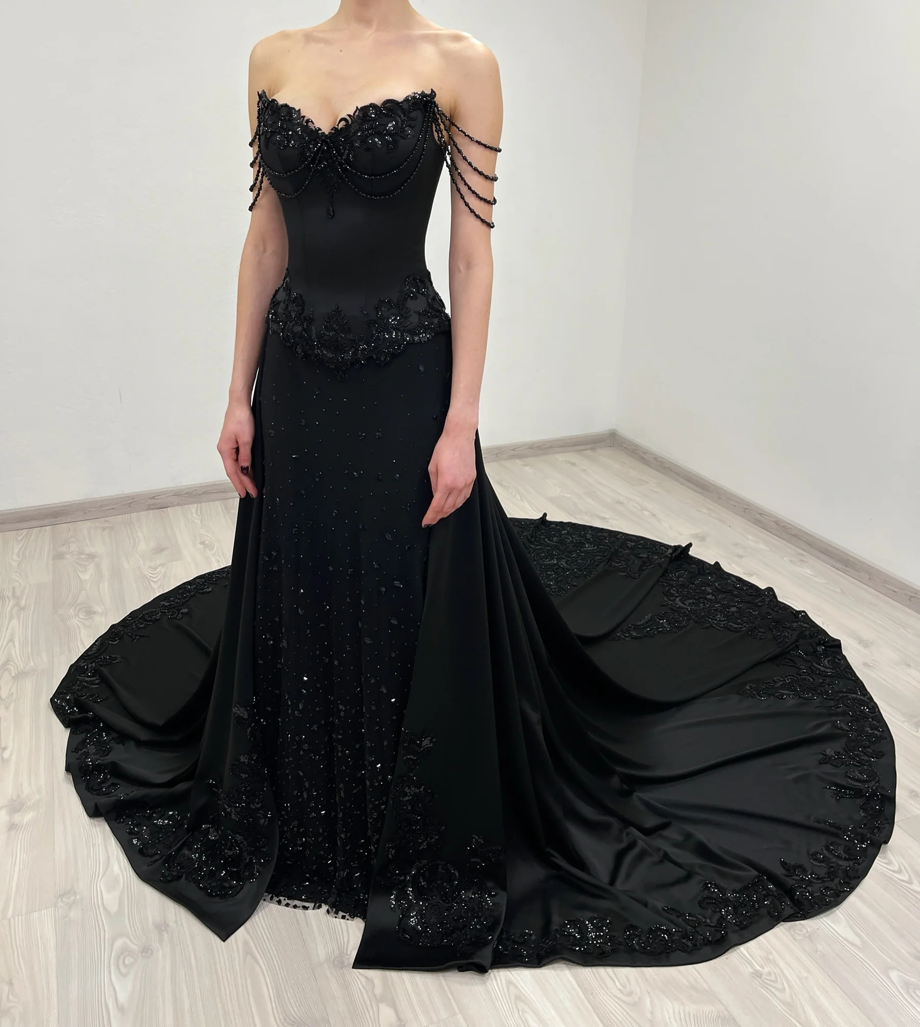 Black wedding dresses from SHERBON offer a bold expression of femininity for the modern bride. Designed for brides who want to stand out with confidence, each dress is made to measure using handcrafted techniques and premium materials. Whether it’s a fitted mermaid silhouette, a dramatic ball gown, or a sleek A-line cut, every piece is built around your measurements—so it fits your body, not a standard size chart.